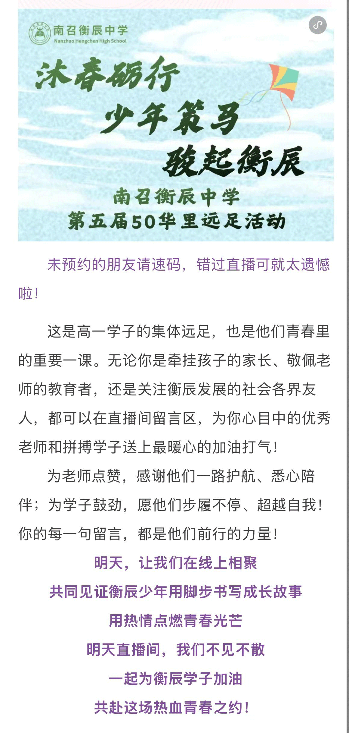 上一篇:南召衡辰中学第五届“沐春砺行 少年策马 骏起衡辰”50华里春行记 下一篇:清明祭英烈 丹心铸忠魂——南召衡辰中学开展烈士陵园祭扫主题教育活动