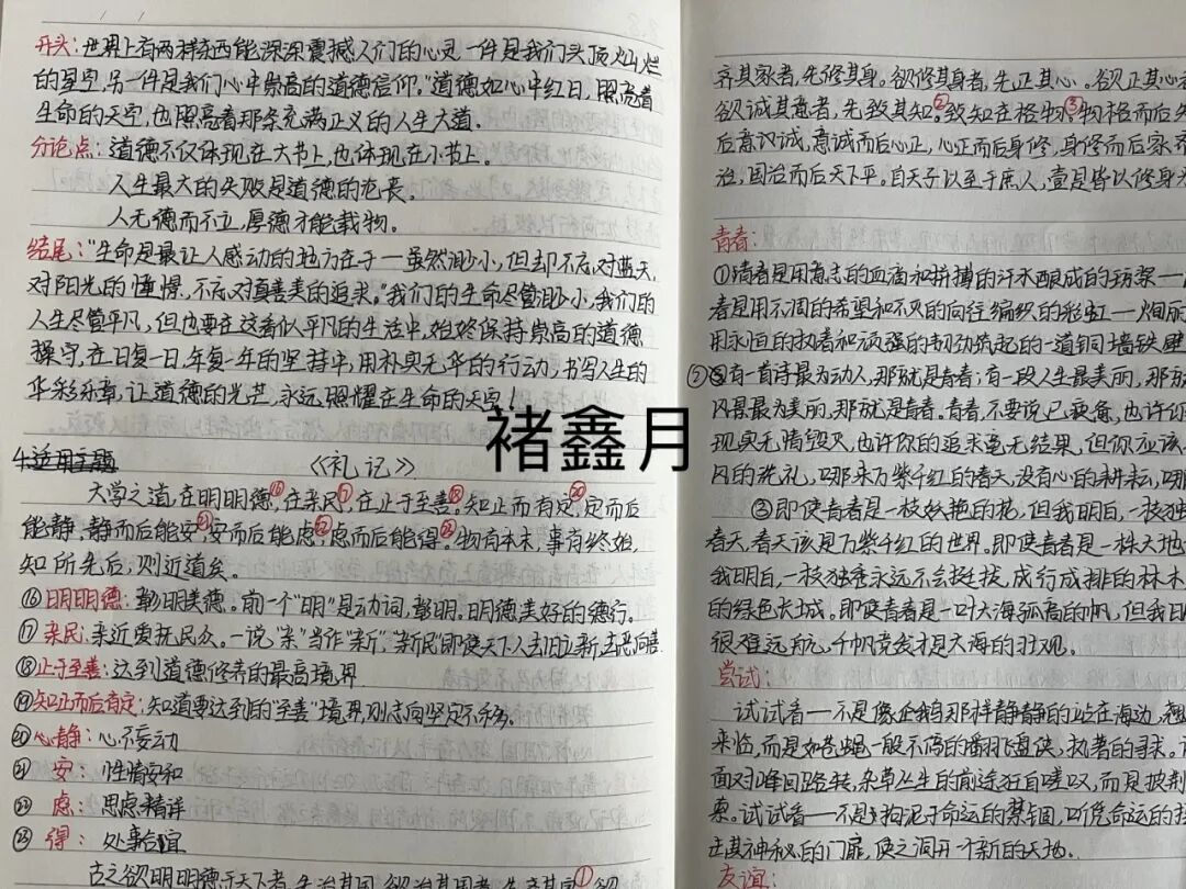 有效的知识迁移和积累,从优秀的课堂笔记开始。课堂笔记既有助于学生养成良好的学习习惯,又能提升他们的课堂注意力,学生边学边思考,课后可以及时查漏补缺,疑难点再解读,提升学习效率,合理地使用笔记本、积累本对学生高中学习生涯极为重要,现在让我们一睹他们的笔下功夫吧。